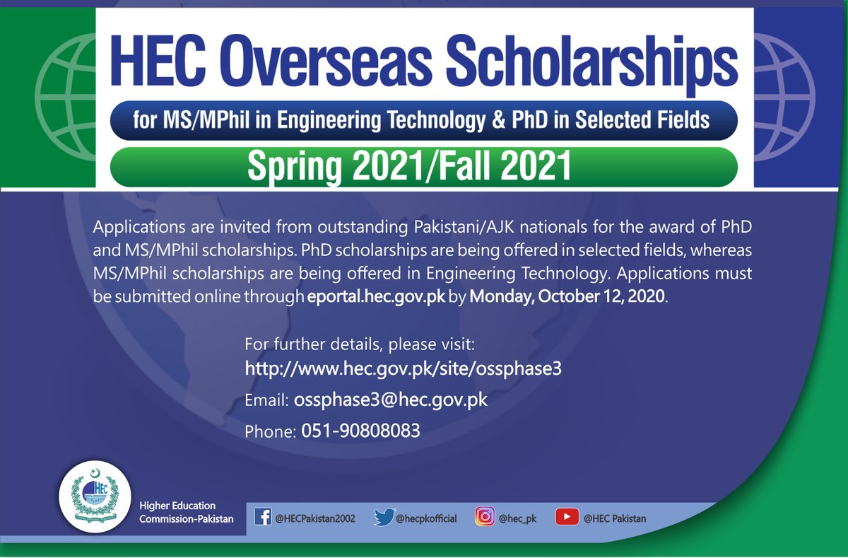 Hec government of pakistan scholarships 2021 fully funded. Hec overseas scholarships for ms mphil in engineering technology phd in selected fields. Hec overseas scholarships 2021 are offered in selected fields whereas ms m.